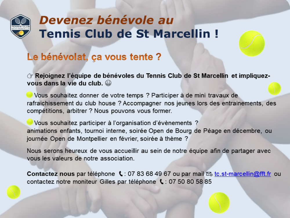 DEVENEZ BÉNÉVOLE AU TC ST-MARCELLIN